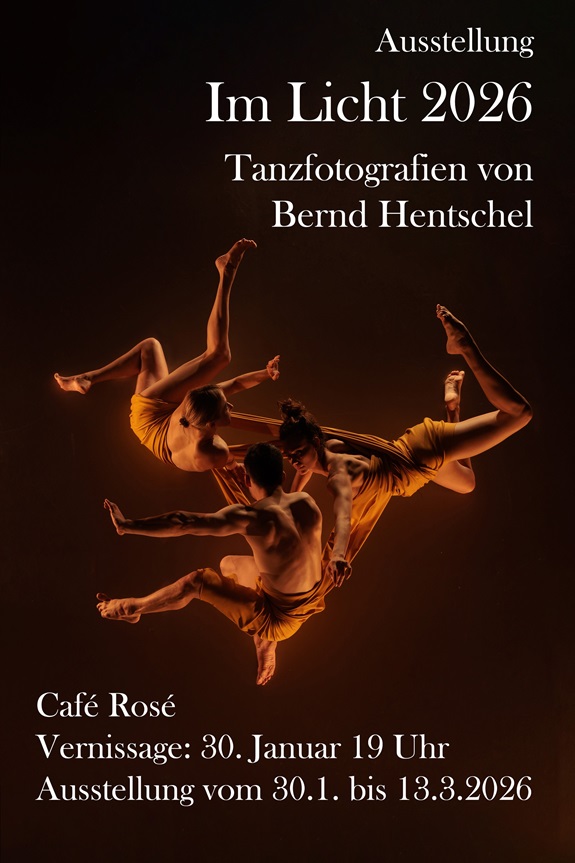 In der Ausstellung Im Licht 2026 ist eine Auswahl meiner Tanzfotografien im Café Rosé in Karlsruhe zu sehen, das von der Tänzerin Heidi Bouche und dem Maler Marvin Meyer gemeinsam betrieben wird.