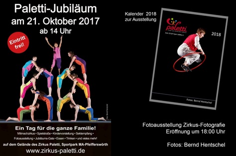 Der Kinder- und Jugendzirkus Paletti feierte am 21. Oktober 2017 sein 20-jähriges Bestehen. Zu diesem Anlass gab es in Mannheim ein großes Fest auf dem Zirkusgelände.